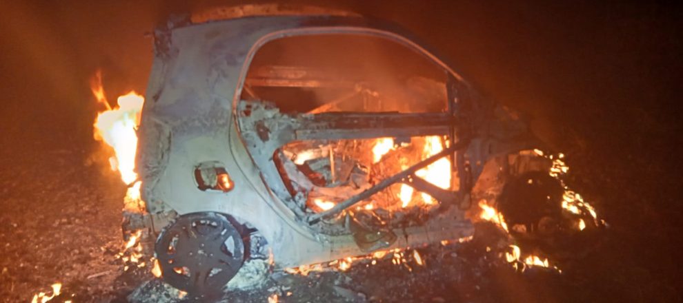 Una smart four four bruciata lungo la Casilina in territorio di Ripi.