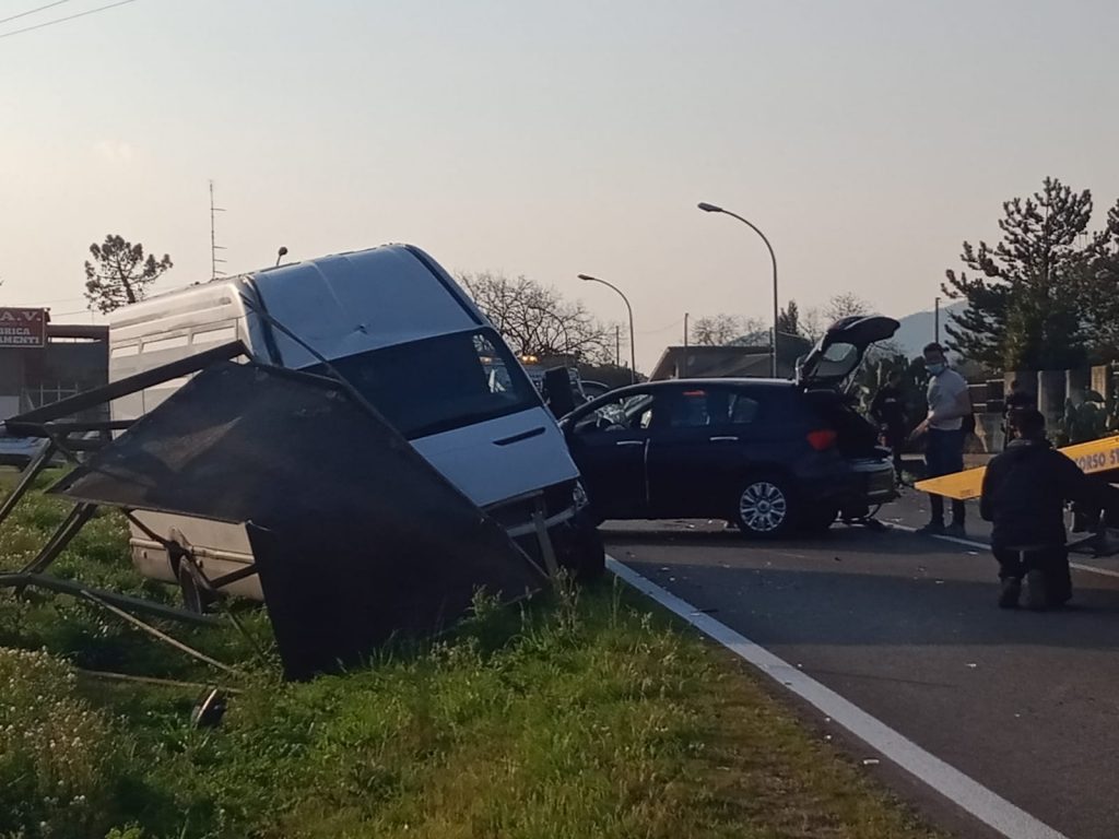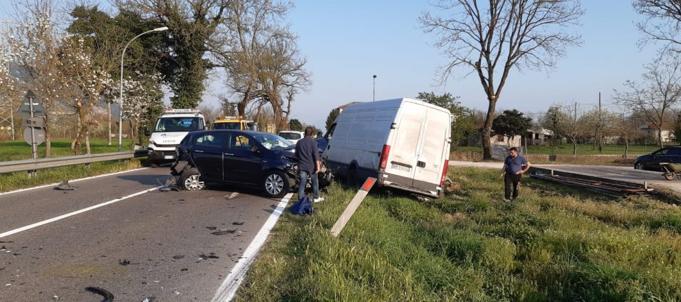 Lo scontro è avvenuto all’altezza dei bivio di Caprile: i veicoli hanno riportato seri danni, tanto da far pensare a conseguenze ben peggiori, che per fortuna non ci sono state. Il furgone infatti si è schiantato su una pensilina, all’altezza di una fermata dell’autobus.