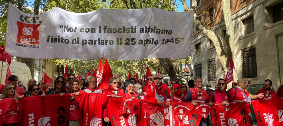 Oltre 3000 persone partite dal basso Lazio con la delegazione Cgil Frosinone/Latina si sono ritrovate in piazza a Roma insieme ad altre decine di migliaia di persone a piazza San Giovanni a difesa della democrazia, della costituzione, del lavoro e contro il fascismo nella giornata organizzata all’indomani dell’ attacco di matrice squadrista ai danni della sede nazionale della Cgil in corso d’Italia a Roma.