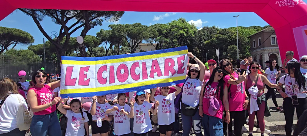 La 25esima edizione della Race for the cure, promossa da Komen Italia ha fatto segnare oggi tanti record: 100mila iscritti, 150mila presenze e 4.523 controlli e visite gratuiti al Villaggio della Salute del Circo Massimo. Screening per la diagnosi precoce dei tumori del seno e di altre patologie prevalenti, in particolare alle donne in condizioni di fragilità socioeconomica e, per la prima volta, alla popolazione transgender. “In questi 25 anni, grazie alla testimonianza delle ‘Donne in Rosa’ abbiamo generato un cambiamento nel modo di affrontare la malattia sostituendo la paura e l’isolamento con un atteggiamento di condivisione e vicinanza”, ha sottolineato Riccardo Masetti, Fondatore di Komen Italia. E tra le donne in rosa c’è anche la nostra Marta di Palma, ciociara doc, che è diventata una testimonial della lotta al cancro e che ha guidato anche quest’anno il gruppo delle ciociare.