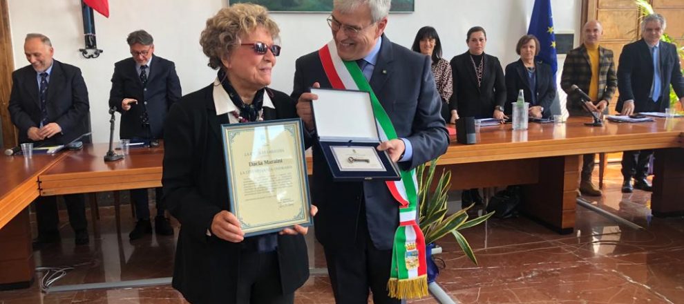 “Scrittrice, sceneggiatrice, poetessa e saggista ha contribuito ad accrescere il livello etico e sociale nonché l’immagine di Sabaudia mediante saggi e narrative ispirate dall’ambiente della Città delle dune” : con questa motivazione il comune di Sabaudia conferisce la cittadinanza onoraria a Dacia Maraini.