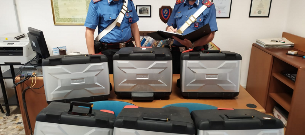 L’immediata perquisizione del veicolo ha consentito di rinvenire al suo interno i 6 bauletti rubati poco prima su alcune moto in sosta sul lungomare di Sabaudia.
