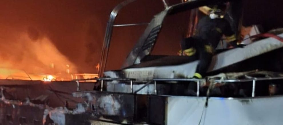 Una imbarcazione è stata spenta nei pressi della banchina mentre altre due, comple-tamente avvolte dalle fiamme, sono monitorate ed in zona sicura del porto.