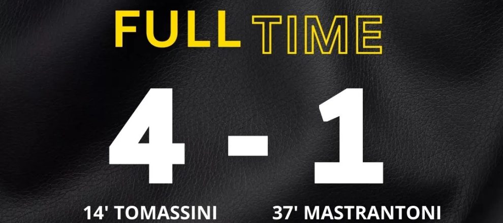 Succede tutto nel primo tempo. Al 14′ padroni di casa in vantaggio con Tomassini di testa sugli sviluppi di un corner dalla sinistra. Raddoppio al 23’ con Luca Senigagliesi su assist di Battista. Al minuto 26 ancora Samb a segno sempre con Tomassini. Sora come all’andata colpito tre volte in meno di mezz’ora. I bianconeri accorciano le distanze al minuto 37 accorcia con Mastrantoni. A mettere la parola fine sulla gara la rete di Arrigoni al 40′. Finisce 4-1.