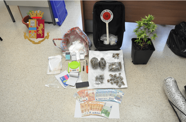 Una volta all’interno i poliziotti hanno fermato un 22enne, originario di Roma, e sequestrato  più di mezzo chilo di droga tra hashish e marjuana, circa 1500 euro in denaro contante, ritenuto provento di spaccio, vario materiale per il taglio ed il confezionamento.