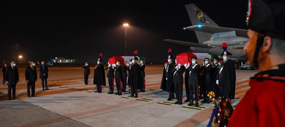 I feretri sono arrivati mertedì sera alle 23.30 a Ciampino a bordo di un volo di Stato. Ad accoglierli i familiari e il presidente del Consiglio Mario Draghi, il ministro degli Esteri Luigi Di Maio e il ministro della Difesa Lorenzo Guerini.