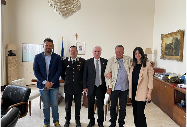 I familiari del militare, alla presenza del Comandante Provinciale dei Carabinieri di Latina, Col. Lorenzo D’Aloia, hanno voluto ringraziare personalmente S.E. il Prefetto di Latina, Maurizio Falco, per aver coordinato il complesso ed articolato iter amministrativo che ha coinvolto una serie di enti locali esoggetti privati per i pareri di competenza, determinandone, in sinergia con il Comune di Sonnino e l’Arma dei Carabinieri del posto, la celere definizione e realizzazione di un legittimo desiderio dei familiari e dell’Istituzione.