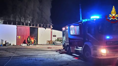 Fiamme l’altra notte lungo la via Pontina al km 74 circa dove un capannone di 300 mq è stato avvolto