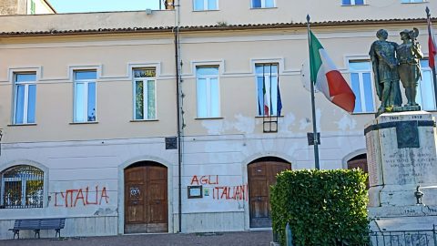 Imbrattata la statua di Caio Mario ad Arpino la notte scorsa, in Piazza Municipio. Ignoti hanno scritto con della vernice,