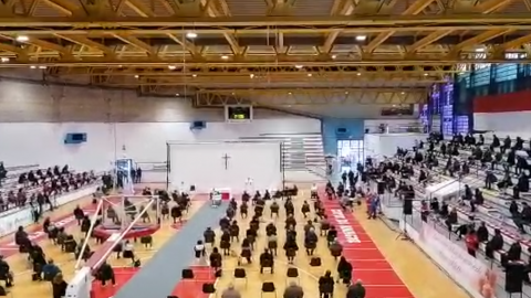 Centinaia di drappi bianchi hanno accompagnato Asia nel suo ultimo viaggio, verso il palazzetto dello sport di Anagni, dove è