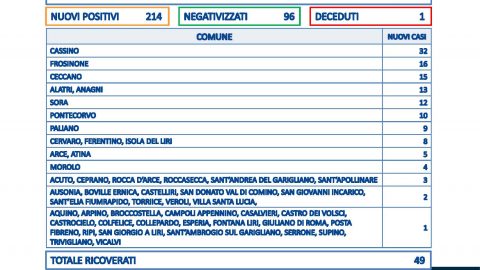 Crescono i casi Covid in Ciociaria, dove i nuovi positivi sono 214, ma c’è soprattutto un balzo in avanti dei