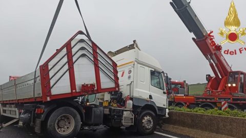 Un camion carico di balle di rifiuti si è ribaltato poco dopo le 14:30 lungo la carreggiata nord dell’autostrada A1
