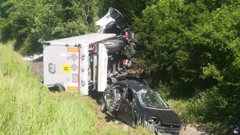 Una spaventosa carambola tra un mezzo pesante, un furgone della viabilità e un’auto che poteva avere un bilancio molto più