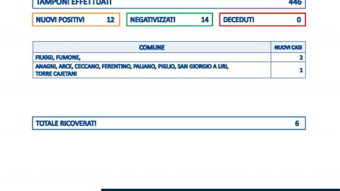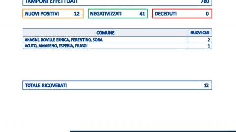 Sono dodici i nuovi casi positivi al Covid nelle ultime 24 ore in provincia di Frosinone. I tamponi effettuati domenica