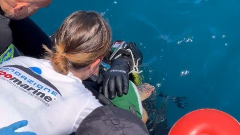 E’ tornata a casa, nel mar tirreno a largo di Anzio dove è stata liberata dopo tre mesi di cure.