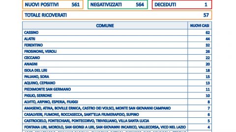 Frosinone – Covid, sono 561 i nuovi casi. C’è un decesso