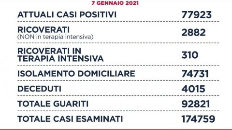Aumentano i ricoveri (39 in più), le terapie intensive (+4) ed i decessi (+7). Cresce anche il rapporto tra tamponi