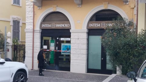 Crollo di un controsoffitto dell’area bancomat della Banca Intesa San Paolo in centro ad Anagni. Secondo le prime informazioni la
