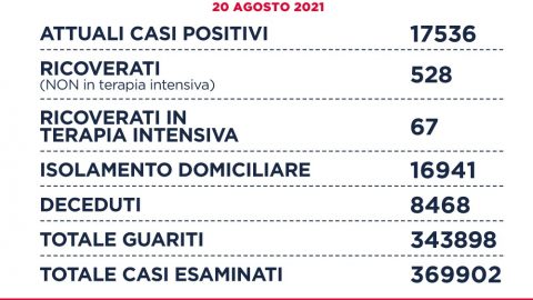 Oggi nel Lazio su 6.744 tamponi e 14.590 antigenici per un totale di oltre 21 mila test, si registrano 350