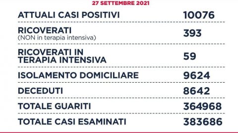 In calo decessi, ricoveri e terapie intensive.Nel Lazio su 9.344 tamponi molecolari e 12.728 tamponi antigenici per un totale di