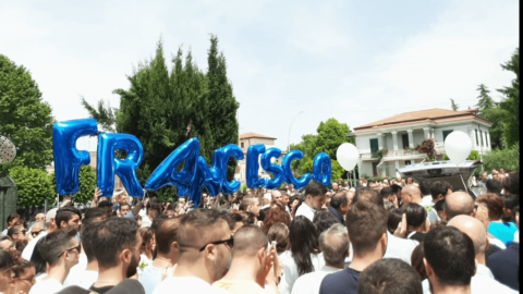 AQUINO – 08 GIU – Giovani e meno giovani con tanti palloncini bianchi in mano lasciati poi volare in cielo.
