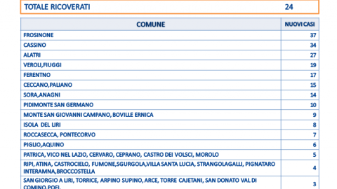 Nessun decesso in ciociaria dopo i due registrati nella giornata di sabato. Domenica i casi accertati sono 388 a fronte