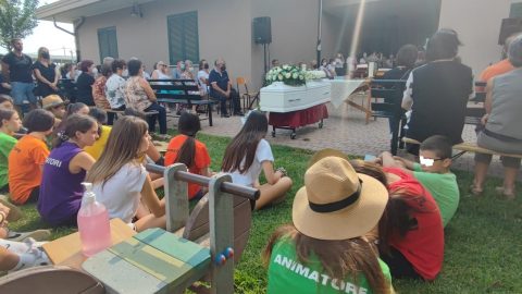 I suoi amici erano seduti in prima fila, tutti con il cappello di paglia proprio come amava indossare Nicolò, il