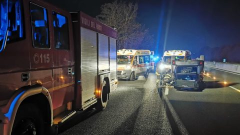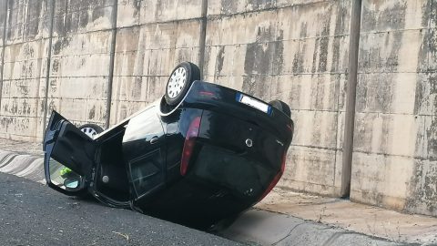 Paura in autostrada per un’auto che si è ribaltata uscendo fuori strada e terminando la corsa sul muro laterale. E’