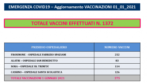 Vaccinazioni anti-covid da record in Ciociaria: sono state già somministrate 1372 dosi al personale sanitario. Nella sola giornata del 1