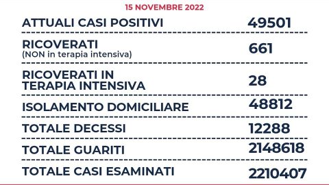 Nel Lazio su un totale di 16.351 tamponi, si registrano 2.716 nuovi casi positivi (-171), sono 3 i decessi (-1),