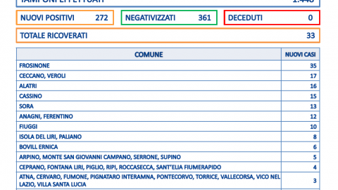 Su poco più di 20 mila tamponi processati nel Lazio si registrano 3279 nuovi casi positivi. Sono 5 i decessi.