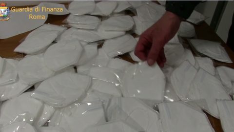 Erano stipate in negozi e magazzini di Roma, Pomezia, Perugia, Anagni e Civitanova Marche le 320 mila mascherine FFP oggi
