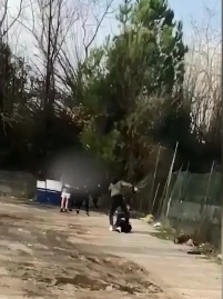 Una scena di una violenza inaudita: un ragazzo a terra, un altro che lo picchia selvaggiamente, davanti ad altri amici,