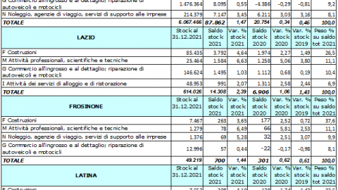 Lazio – Imprese, c’è il segno positivo: a trainare la crescita Frosinone e Latina