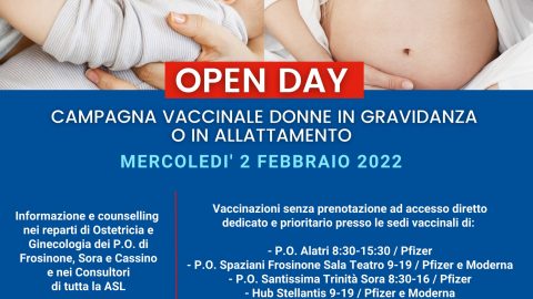 Un OPENDAY vaccinale interamente dedicato alle donne in gravidanza o in allattamento. E’ quello organizzato per mercoledì 2 febbraio dalla