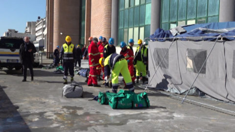 Le tende del pre triage allestite all’ospedale di Frosinone. Dopo quelle montante al “Dono Svizzero” di Latina, le tensostrutture per
