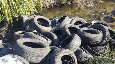 Pneumatici gettati nell’alveo del fiume Alabro a Ferentino.  I carabinieri Forestali di Anagni hanno individuato i presunti responsabili. Si tratta