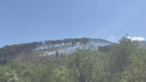 Fiamme nel primo pomeriggio in localita Ponte Teano a Pontecorvo. A prendere fuoco gran parte dellla vasta pineta. Sul posto