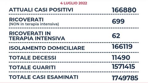 Nel Lazio su un totale di 19.421 tamponi, si registrano 4.777 nuovi casi positivi (-3.896), sono 7 i decessi (+5),