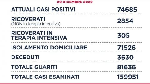Oggi nel Lazio su quasi 15 mila tamponi (-999) si registrano 1230 casi positivi (-258), 68 decessi e 3736 i