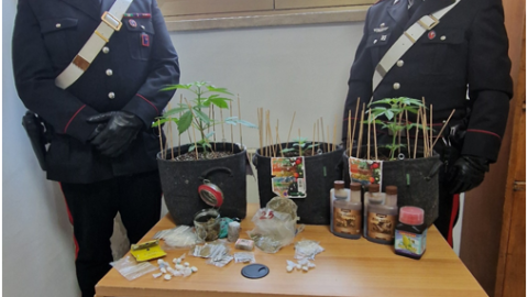 60,00 grammi di marijuana , 4 piante di “Cannabis Indica”, gr 105 di hashish e 10 di cocaina: è quanto