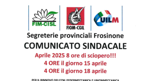 Frosinone – Fim, Fiom e Uilm proclamano lo stato di agitazione: 2 giorni di sciopero, blocco degli straordinari e della flessibilità