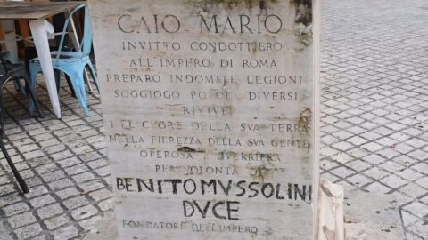 Imbrattata la statua di Caio Mario ad Arpino la notte scorsa, in Piazza Municipio. Ignoti hanno scritto con della vernice,