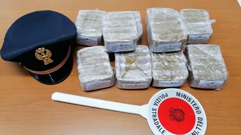 Cinque chili di hashish divisi in panetti ciascuno dal peso di un mezzo chilogrammo: è quanto hanno trovato gli agenti