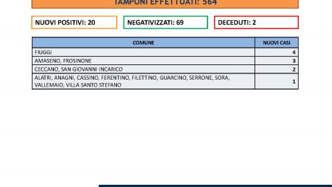 Frosinone – Covid, oggi sono sei i nuovi positivi