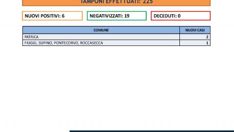Sei nuovi casi positivi al Covid in provincia di Frosinone. E’ quanto emerge oggi dal monitoraggio effettuato domenica con 225