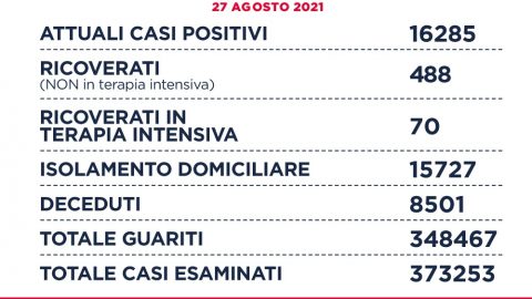 Oggi nel Lazio su 6.744 tamponi e 14.590 antigenici per un totale di oltre 21 mila test, si registrano 350