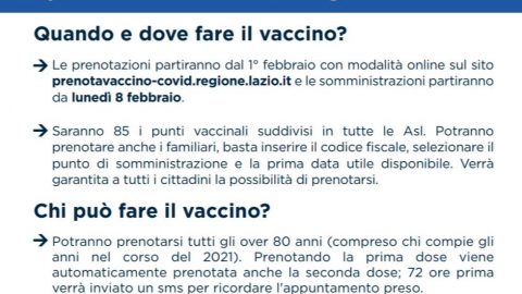 Lazio – 1 febbraio: torna il giallo e parte la campagna vaccinale over 80. Tutto quello che c’è da sapere…..