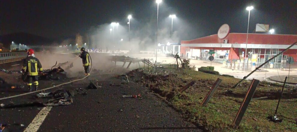 Una cisterna che trasportava gpl è esplosa dopo la collisione con una bisarca avvenuta in A1, all’entrata dell’area di servizio di Teano: la forte deflagrazione ha divelto il guard rail ed ha causato anche danni al ristorante dell’area di servizio. L’incidente è avvenuto al chilometro 708 in direzione sud: la cisterna prima ha preso fuoco e poi, quando i soccorsi erano già sul posto, c’è stata la violenta esplosione. Ci sono due feriti nell’incidente.