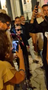Tantissimi i curiosi, tra residenti e villeggianti, che hanno ripreso la cantante con i loro cellulari. Una passeggiata, quel-la dell’artista italo-americana, immortalata con foto e video.